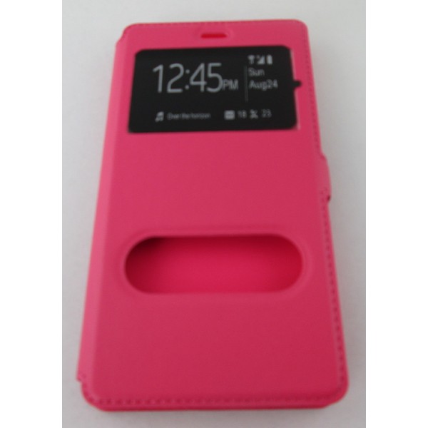 étui portefeuille huawei P8 rose avec fenêtres et support vidéo intérieur en silicone