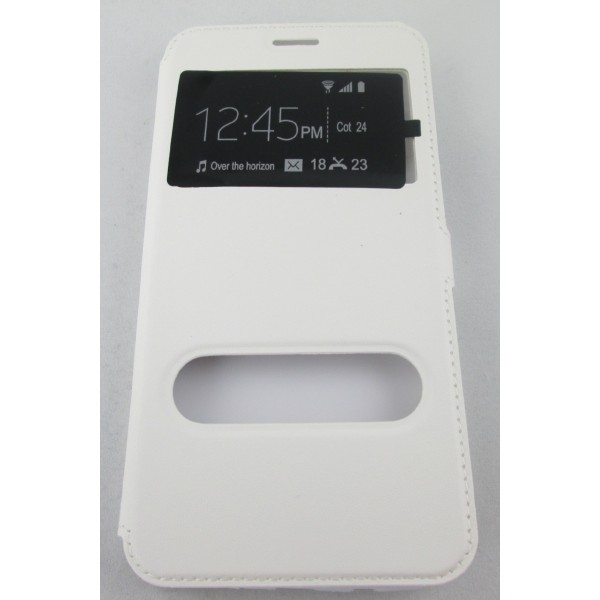 étui portefeuille samsung galaxy A8 blanc avec fenêtres et support vidéo intérieur en silicone