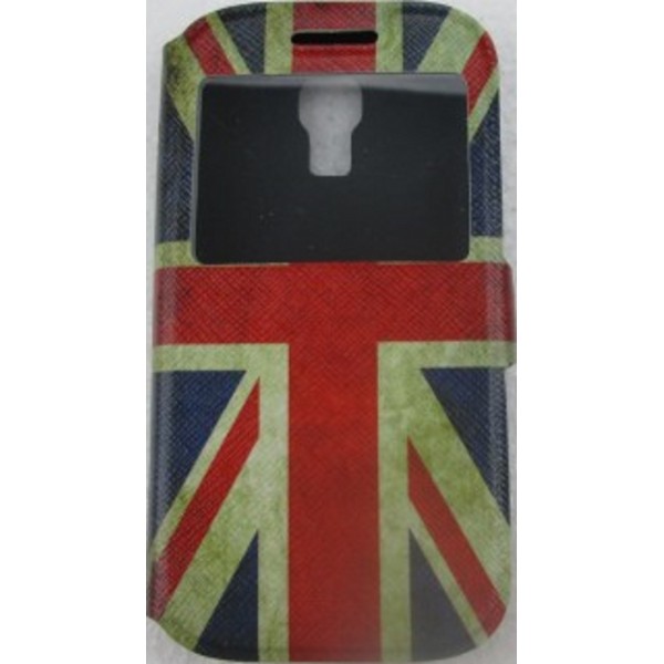 étui portefeuille samsung galaxy s4 mini drapeau anglais usé avec fenetre