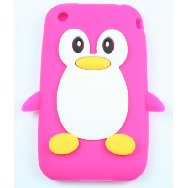 Coque Iphone 3G/ 3GS rose fushia pingouin Silicone