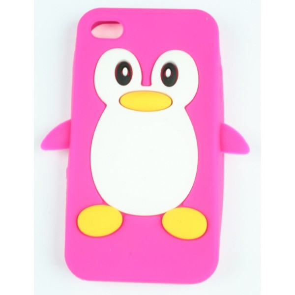 Coque iphone 4/ 4s rose fushia pingouin silicone