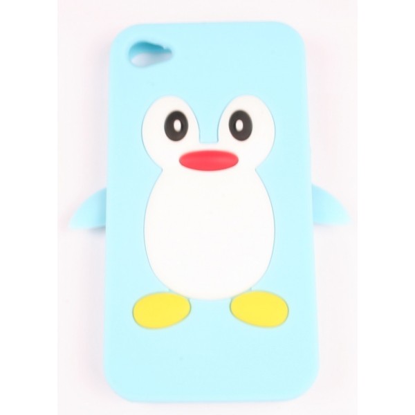 Coque Iphone 4/ 4S bleu ciel pingouin silicone