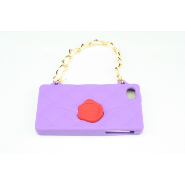 La coque violette sac à main cliché est en silicone violet avec un touche de rouge. Coque violette Compatible IPhone 4 /4S