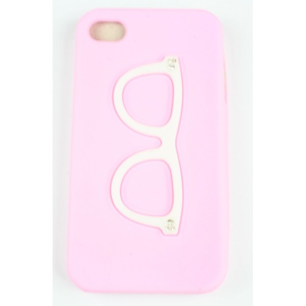 La Coque iphone 4/4S Silicone Design Lunette glasses avec strass et de couleur rose pale.