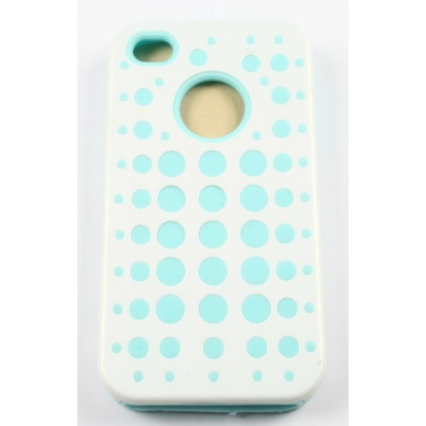 Coque iphone 4 /4S blanche et bleu ciel semi rigide