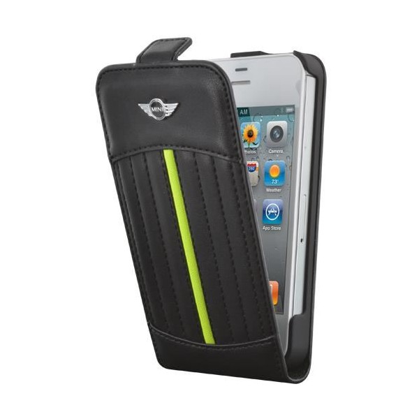 étui rabat iphone 5/5s mini cooper noir avec bande jaune