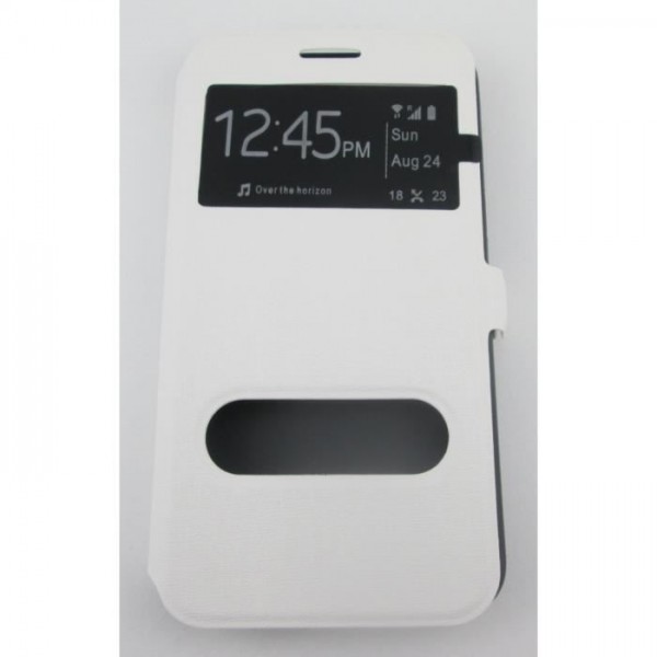 étui portefeuille samsung galaxy grand 2 blanc avec fenetres et support vidéo